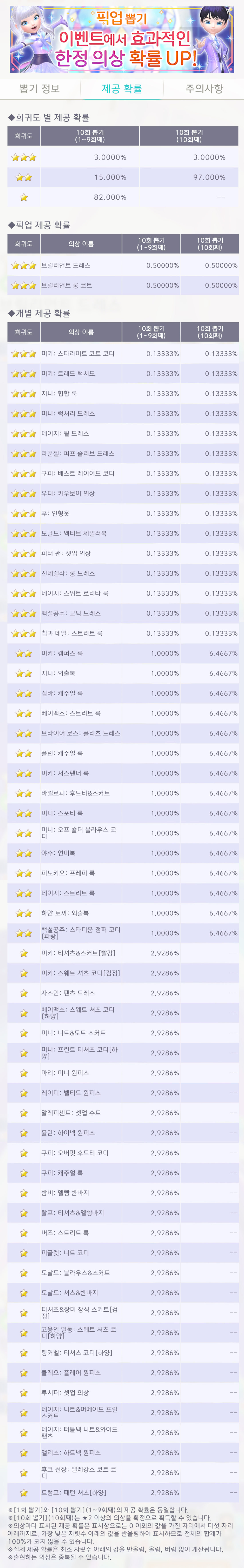 현재 개최 중인 뽑기 제공 확률에 대하여