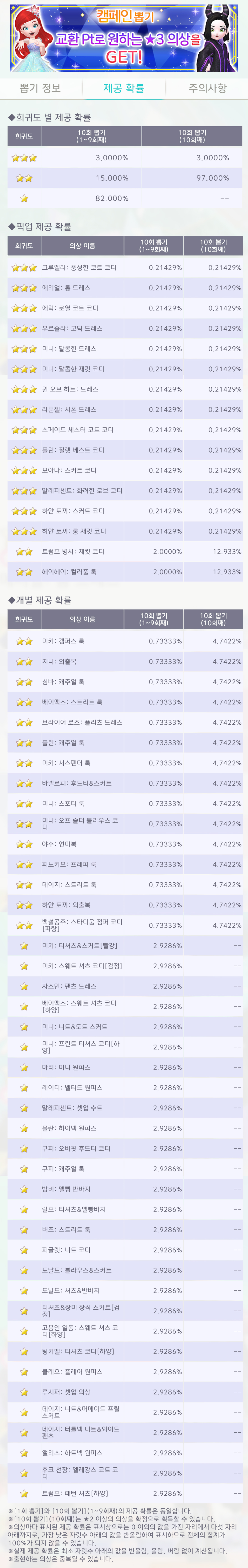현재 개최 중인 뽑기 제공 확률에 대하여